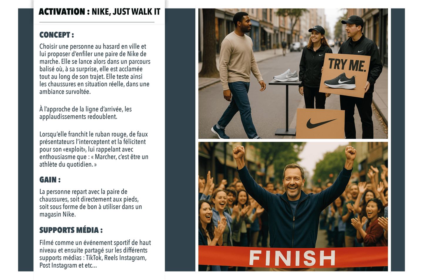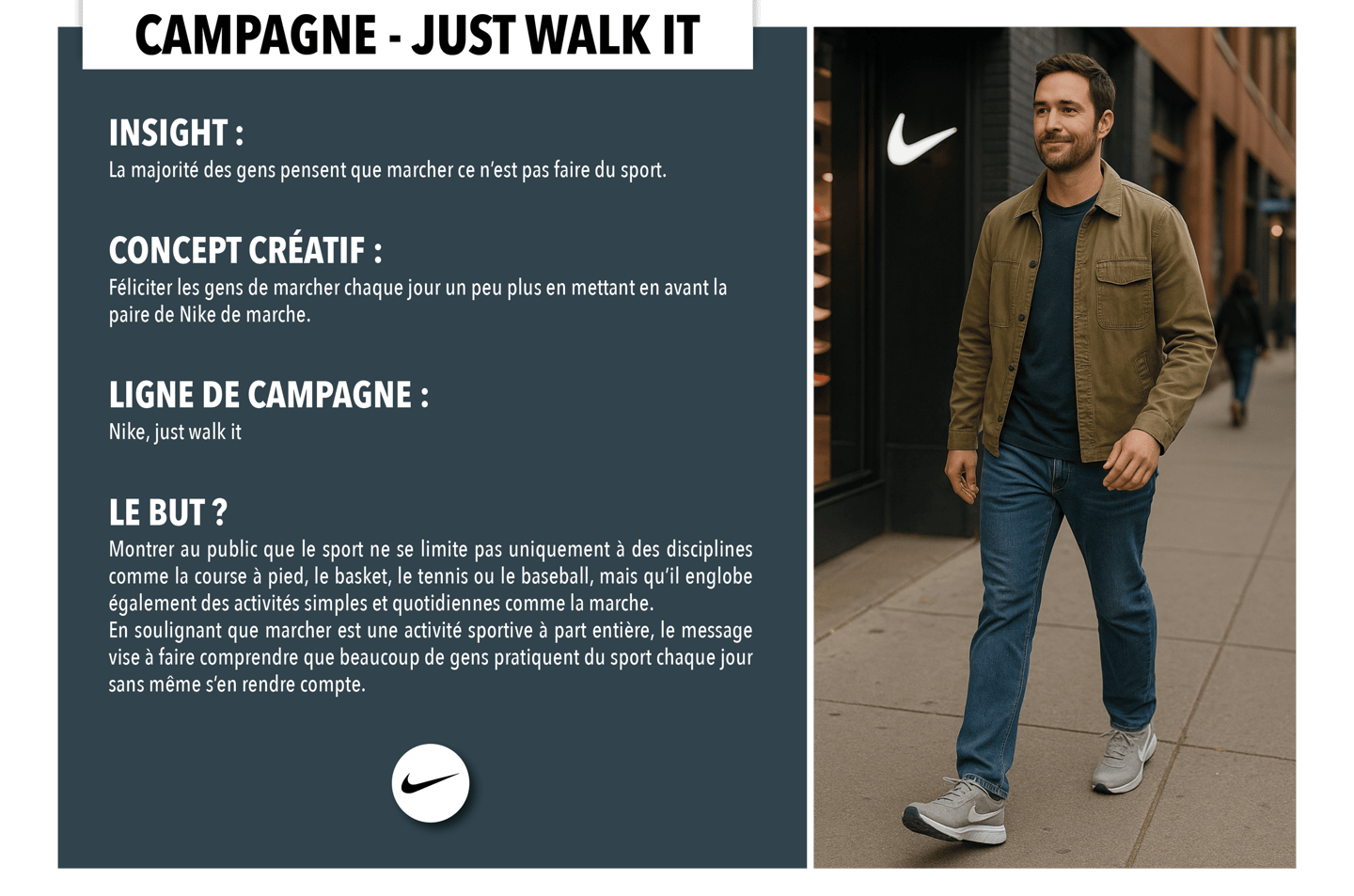 Avec "Nike, Just Walk It", on élargit la définition du sport : ce n’est pas seulement courir, sauter ou marquer, c’est aussi bouger, même à travers un geste simple et quotidien comme la marche.